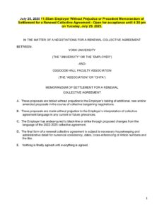 2025-07-25 1155am Memorandum of Settlement for a Renewal Collective Agreement – 20250729 Fully Executed